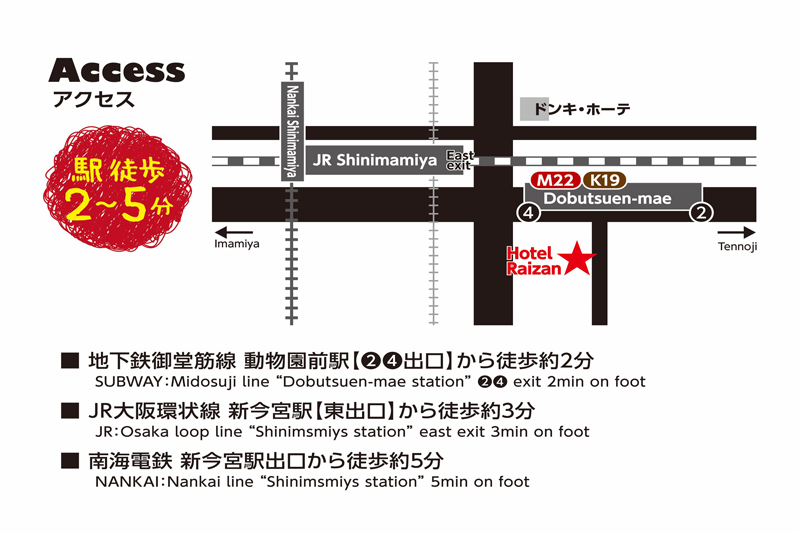 - It takes 1 minute by walking until here from the 1st and 3rd exit ofsubway Doubutsuenmae station(M22、K19)1