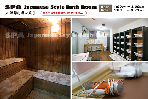 - Bath room(Distinguishing man and woman)/Shower room/Laundromat/Beverage vending machine/Living area/Newspapers and magazines, cartoons